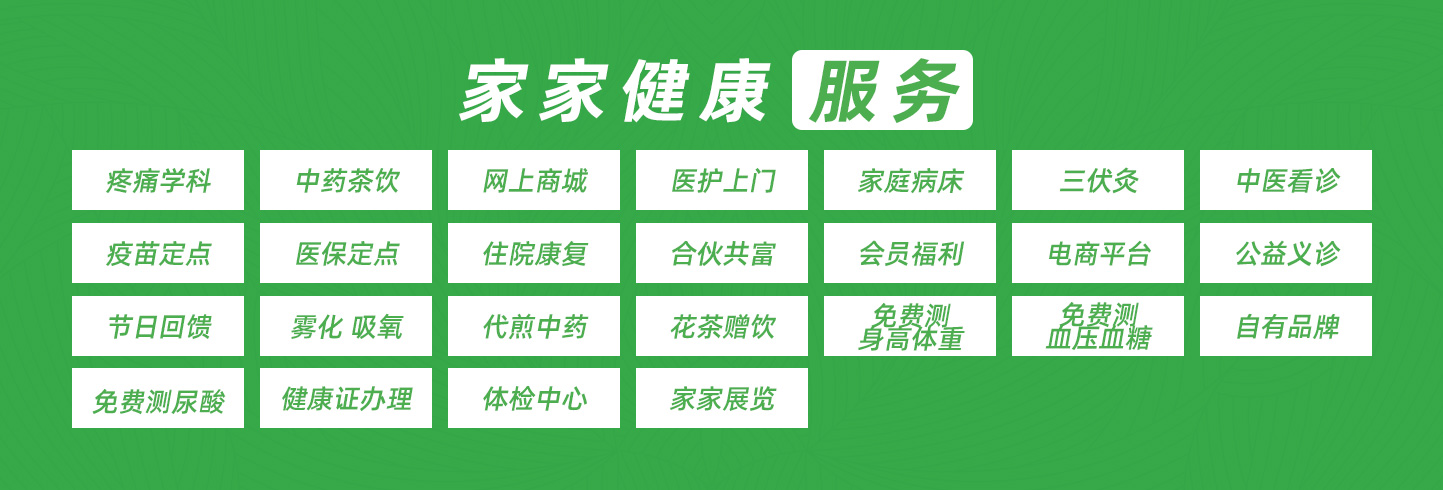 专病专科服务:为了更精准地满足患者需求,家家健康创新开展疼痛学科、犬伤门诊、疫苗接种等专病专科服务,以专业、便捷、贴心的服务赢得顾客信赖。
